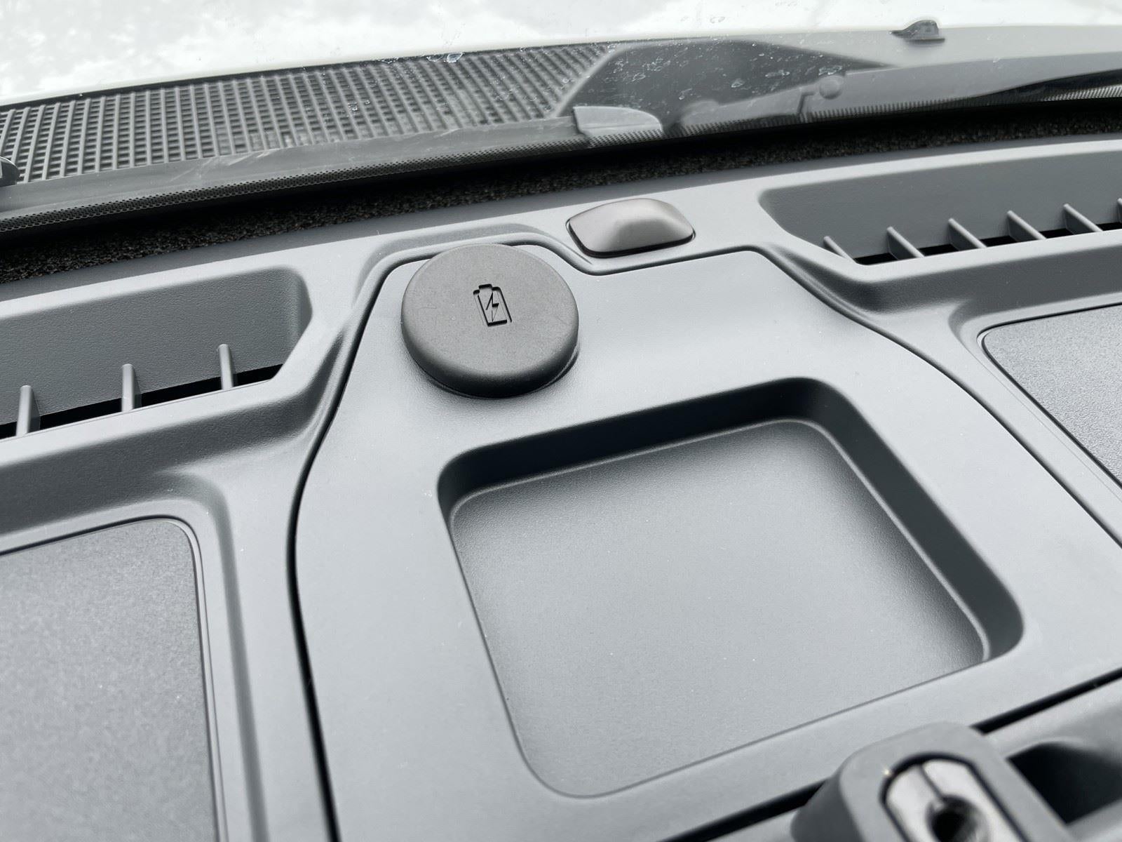 - The vehicle is equipped with a camera that displays an image of the area behind the vehicle on an interior display.