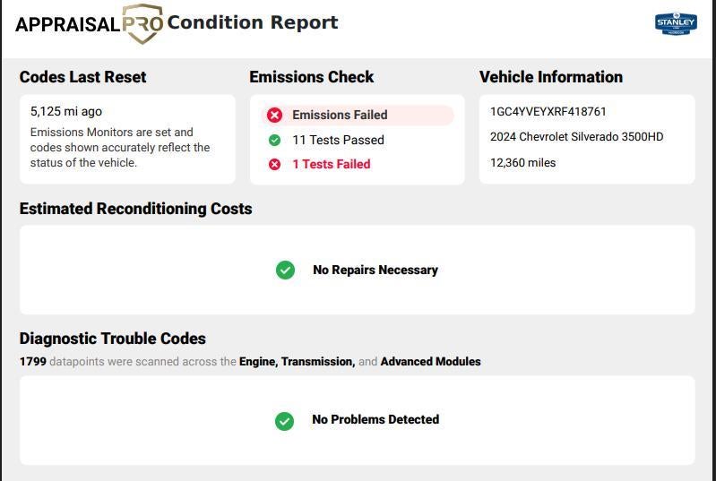 Clean Carfax! One Owner! **WARRANTY REMAINING: 20 MONTHS OR 23,967 MILES**, **ENG: DURAMAX 6.6L TURBO-DIESEL** ($9,490 ADD TO MSRP), **HIGH COUNTRY PREMIUM PACKAGE** ($3,315 ADD TO MSRP), **POWER RETRACTABLE ASSIST STEPS WITH PERIMETER LIGHTING** ($1,500 ADD TO MSRP), TECHNOLOGY PACKAGE, GOOSENECK/5TH WHEEL PACKAGE, 60/40 REAR FOLDING BENCH SEAT WITH STORAGE PACKAGE, ALLISON 10-SPEED AUTO, 4WD, HEATED STEERING WHEEL, KEYLESS ENTRY, PUSH BUTTON START, REMOTE START, BUCKET SEATS, POWER SUNROOF, HEATED & COOLED FRONT SEATS, 13.4 IN SCREEN DISPLAY, APPLE CARPLAY, ANDROID AUTO, Bluetooth® for Hands-Free Phone, ADAPTIVE CRUISE CONTROL, NAVIGATION, WIRELESS CHARGING PAD, LED HEADLAMPS, LED FOG LAMPS, LED DAYTIME RUNNING LAMPS, POWER TAILGATE, BLIND SPOT ALERT, CROSS TRAFFIC ALERT, LANE DEPARTURE WARNING