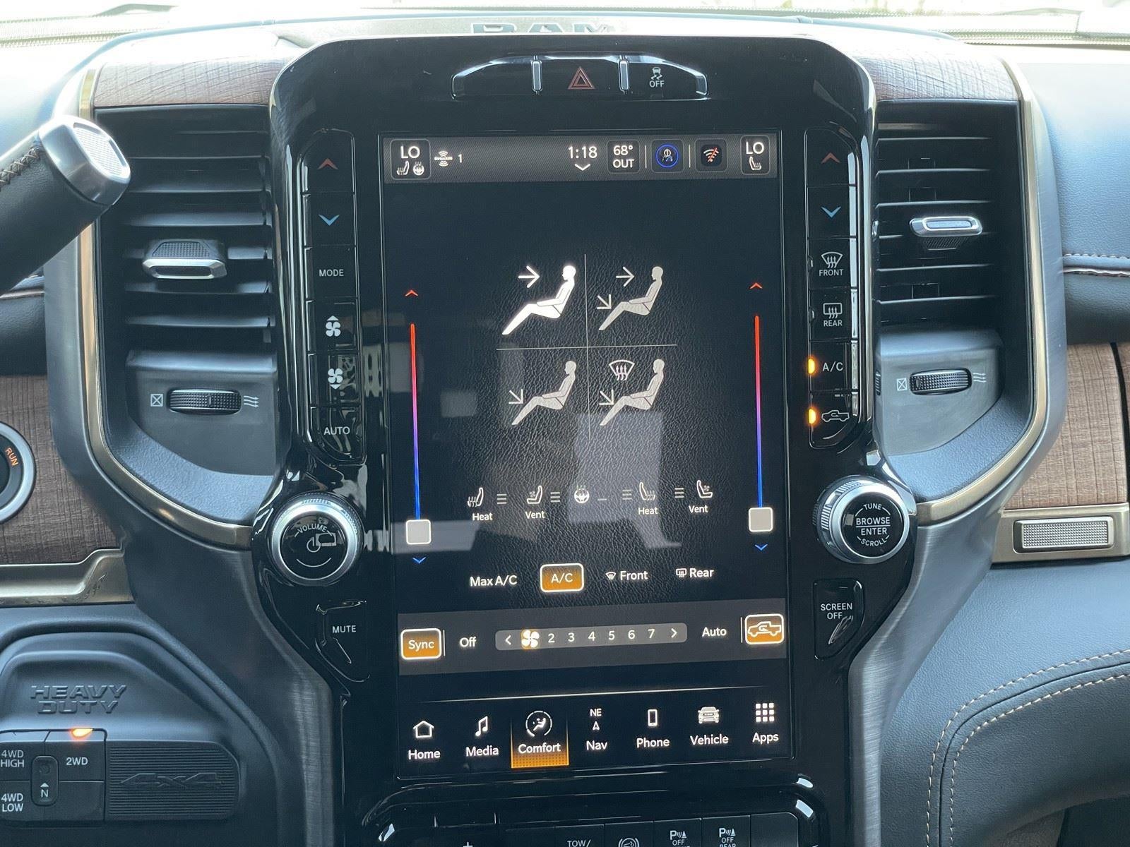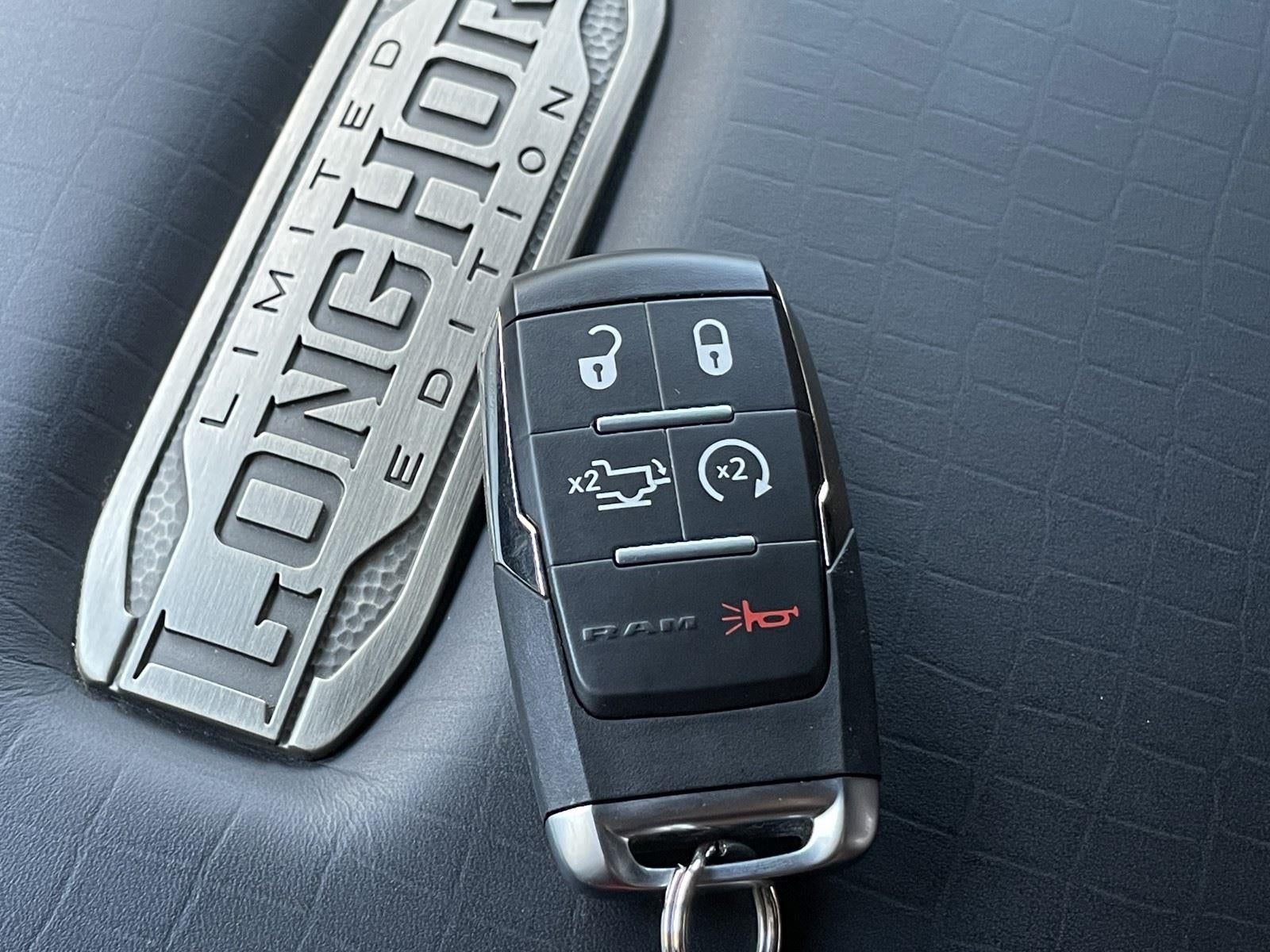 One Owner! **WARRANTY REMAINING: 20 MONTHS OR 18,733 MILES**, **6.7L I6 CUMMINS HO TURBO DIESEL ENGINE** ($12,595 ADD TO MSRP), **TOWING TECHNOLOGY GROUP** ($1,895 ADD TO MSRP), **DUAL REAR WHEELS** ($1,495 ADD TO MSRP), **LONGHORN LEVEL 1 EQUIPMENT GROUP** ($1,220 ADD TO MSRP), PROTECTION GROUP, 6-SPEED AUTOMATIC AISIN HD, 4WD, HEATED STEERING WHEEL, KEYLESS ENTRY, PUSH BUTTON START, REMOTE START, POWER DRIVER'S SEAT WITH MEMORY, HEATED & COOLED FRONT SEATS, HEATED SECOND-ROW SEATS, UCONNECT 5, 12 IN SCREEN DISPLAY, HARMAN KARDON, APPLE CARPLAY, ANDROID AUTO, Bluetooth® FOR HANDS-FREE PHONE, ALPINE AUDIO SYSTEM, REAR VIEW CAMERA, CRUISE CONTROL, NAVIGATION, WIRELESS CHARGING-PAD, LED HEADLAMPS, LED TAIL LAMPS, LED BED LIGHTING, BLIND-SPOT ALERT, CROSS TRAFFIC ALERT, HILL-START ASSIST, THEFT DETERRENT SYSTEM
