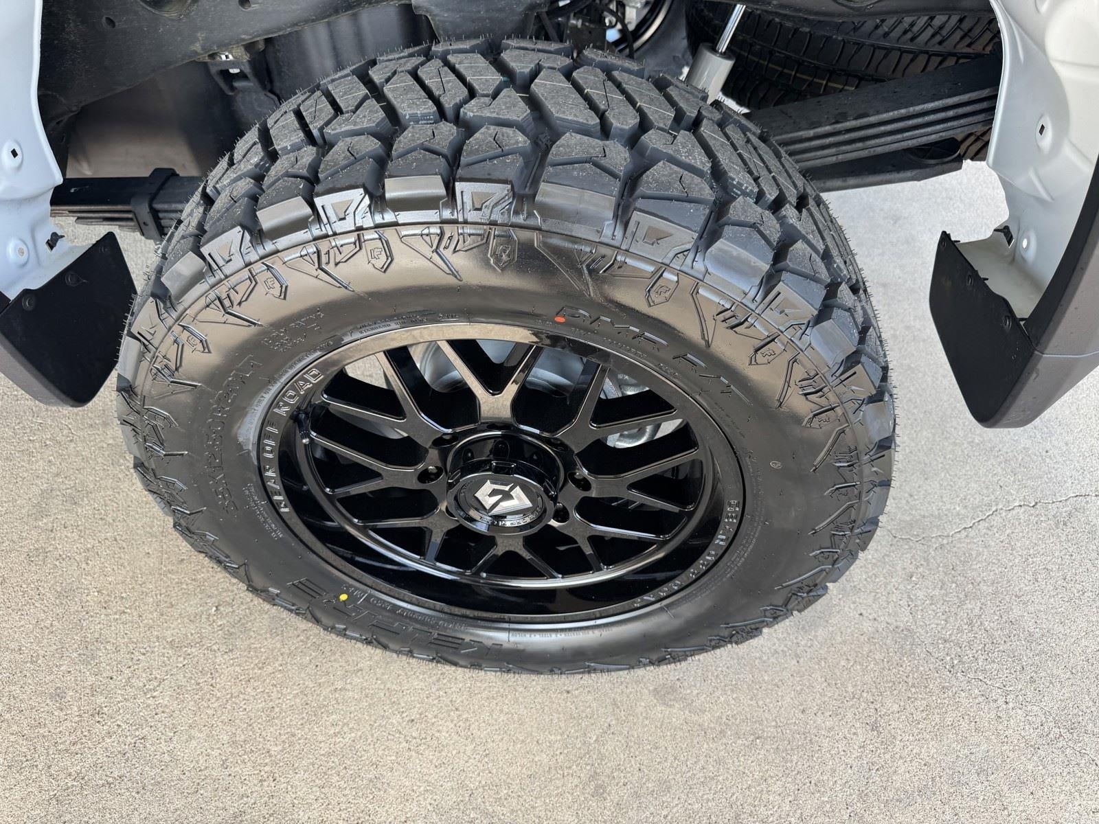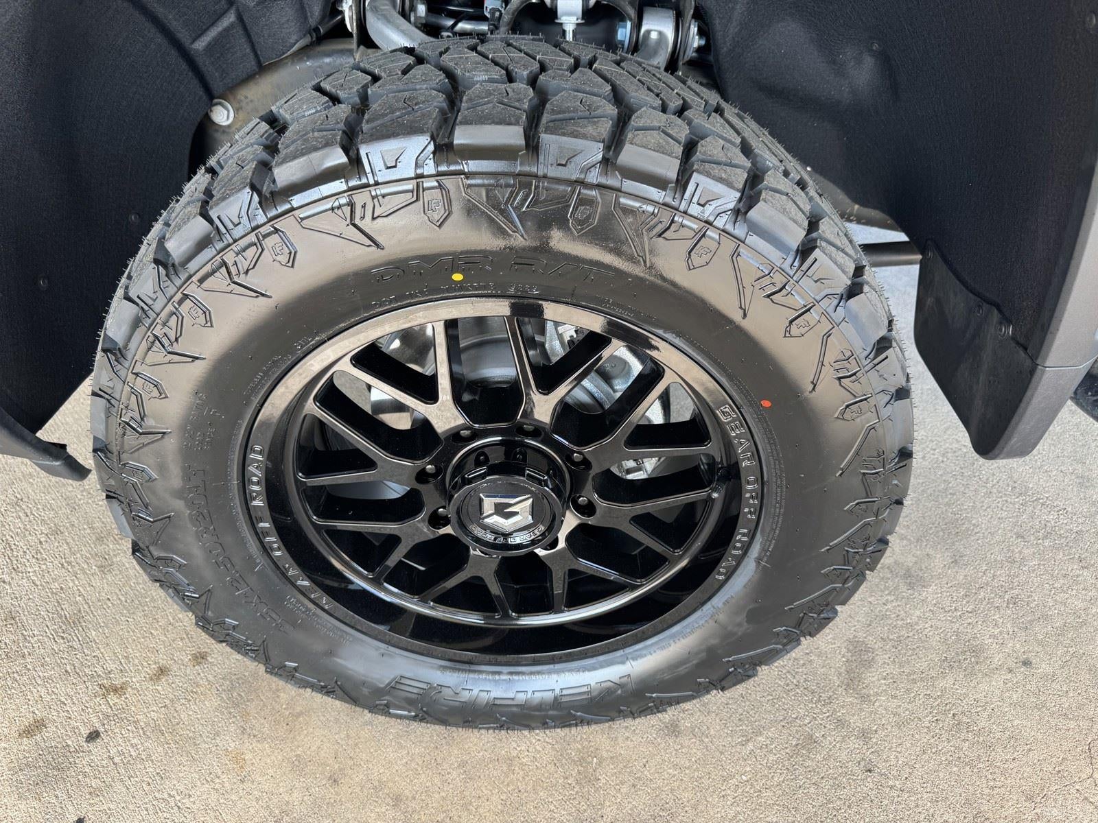 UPFIT: 20X9 GLOSS BLACK GEAR OFFROAD RAID 763B 8X180 WHEELS - 35X12.50XR20LT KELFIRE DMR RT HYBRID TIRES - ROUGH COUNTRY 3 INCH LEVEL KIT